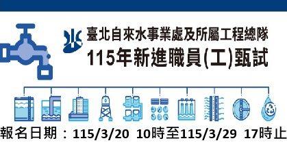 臺北自來水事業處及所屬工程總隊115年新進職員(工)甄試公告